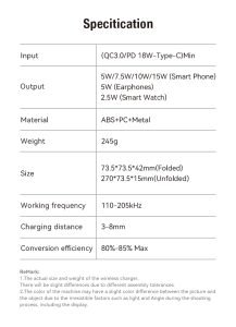 1. Input: QC3.0(5V-2A,9V-1.67A,12V-1.5A)/PD 18W-Type-C Min